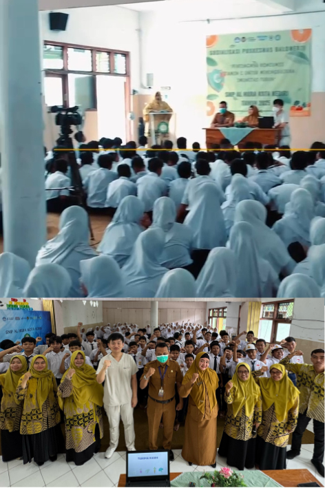 Selepas upacara, siswa SMP Al Huda mengikuti kegiatan osialisasi kesehatan yang disampaikan oleh tim dari Puskesmas Balowerti. Kegiatan ini bertujuan untuk meningkatkan kesadaran siswa tentang pentingnya mengonsumsi vitamin C. Dalam sosialisasi ini, dijelaskan bahwa vitamin C berperan dalam meningkatkan daya tahan tubuh, membantu penyembuhan luka, serta menjaga kesehatan kulit dan gigi. Siswa juga diberikan informasi mengenai sumber alami vitamin C, seperti jeruk, jambu biji, paprika, dan sayuran hijau, serta pentingnya pola makan seimbang untuk mencukupi kebutuhan harian vitamin C. Sosialisasi ditutup dengan sesi tanya jawab interaktif, di mana siswa diberikan kesempatan untuk berkonsultasi langsung mengenai pola makan sehat dan kebutuhan vitamin C mereka.